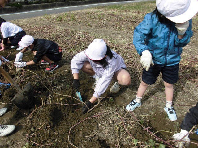 意気揚々と畑に向かい、みんなで一生懸命芋ほりに励みました。
