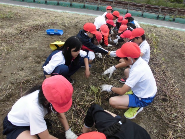 軍手をはめた手でサツマイモの周りの土をかき出している子などがいました。