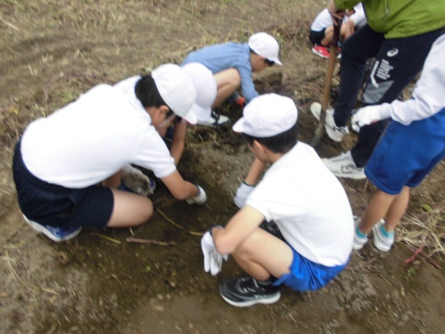 みんな一生懸命に土を掘り、自分の手でサツマイモを収穫しようとしていました。