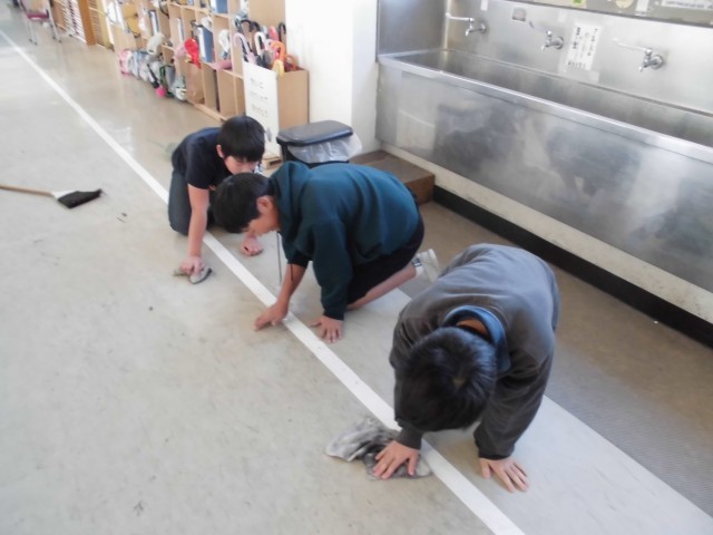 この日は1年生前廊下を磨いていました。