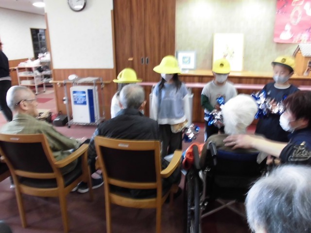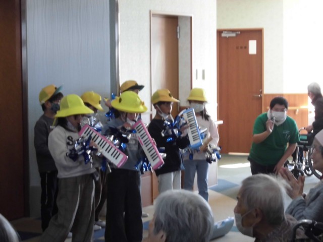 まずは、器楽演奏や歌、ダンスなどを披露しました。施設の方の温かい手拍子に、子どもたちは嬉しそうでした。