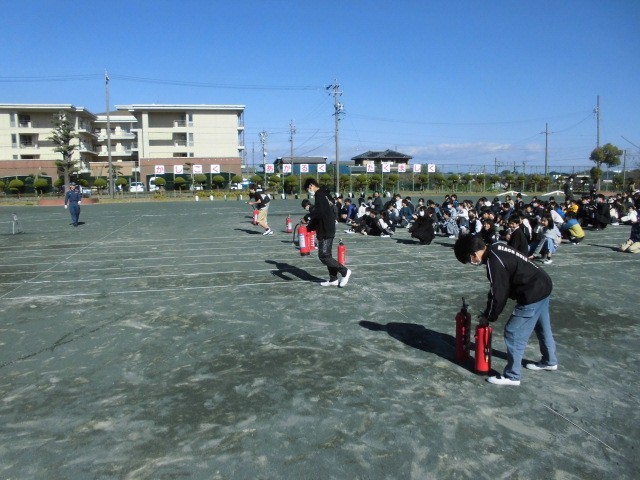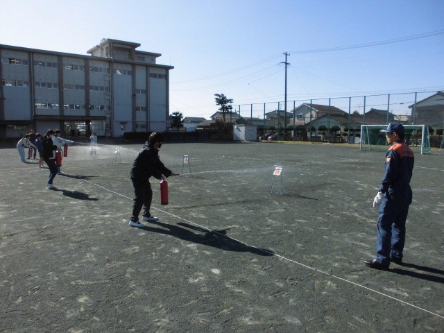 消火器は重く、ねらいを定めるのが難しかったですね。