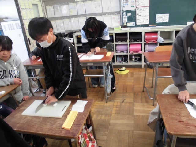 今日は包丁の練習と、ベーコン巻きの予行練習を行いました。