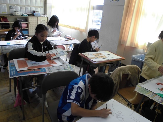 登場人物は何をしているのか、どんな表情なのかなど、自分たちの表現で描いていました。