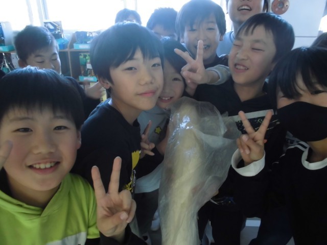 下校時には、だれが持ち帰るかじゃんけん大会が開催!見事勝ち取った児童が、誇らしげに大根を抱えて下校しました。
