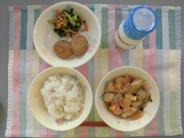 麦ご飯 牛乳 関東煮 白ごまつくね 骨太和え