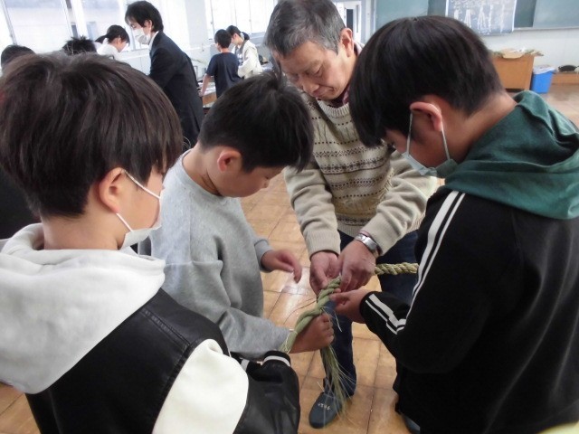 今日は、地域の方に教えていただきながらしめ縄づくりを体験しました。