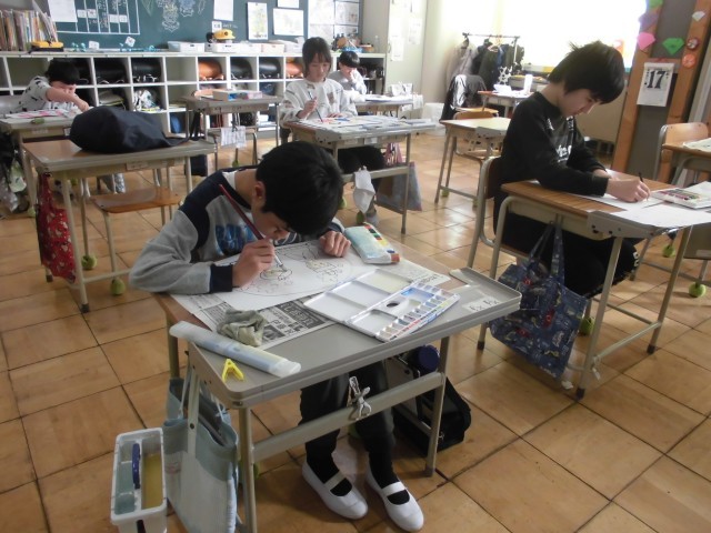 季節にちなんだ絵を、絵の具でぬりました。