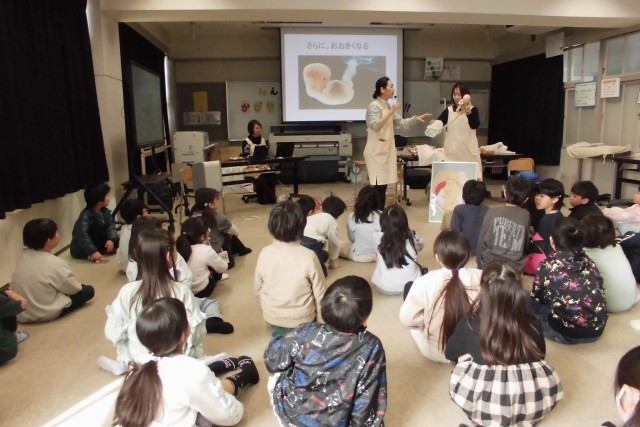 命の始まりや誕生に向けての仕組みを、写真や図を通して伝えていただきました。