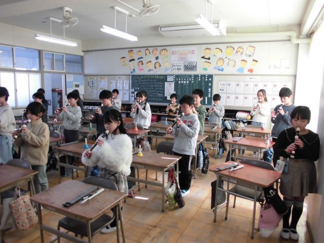 今日は、感謝の気持ちを込めて、リコーダーとベル・トーンチャイムで「パフ」を演奏しました。