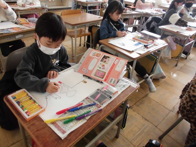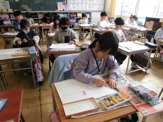 くねくね、にょろにょろ、かくかくなどいろんな音からどんな線がイメージできるか考え、線を描き
