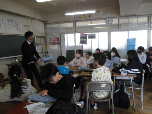 今日は千秋中学校の先生方に来ていただき、出前授業をしていただきました。