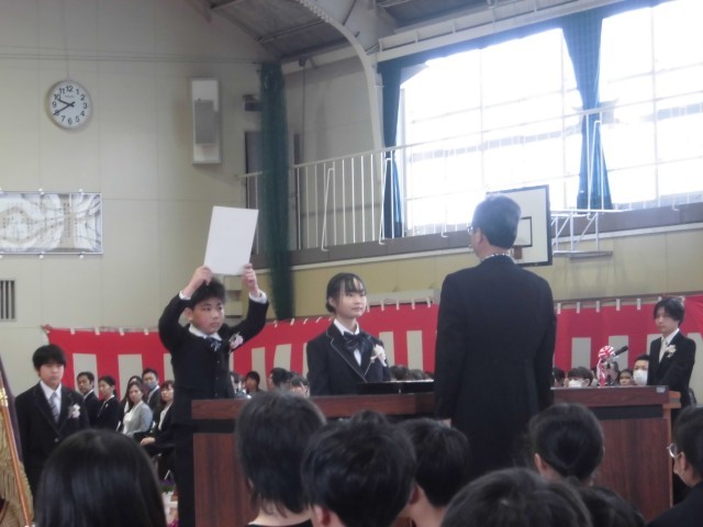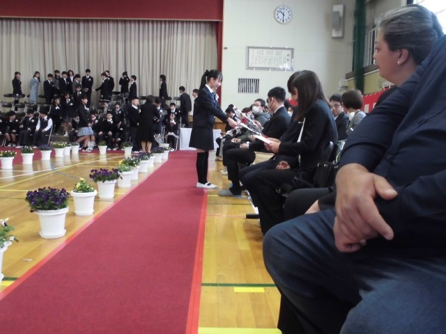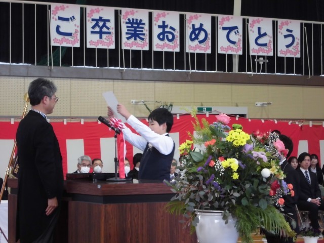 緊張した様子で入場してきた卒業生。それでも、堂々と卒業証書を受け取り、しっかりとお話を聞くようすから、