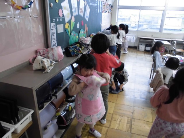 エプロンの着脱から配膳から片付けまで、すべて自分たちで行いました。