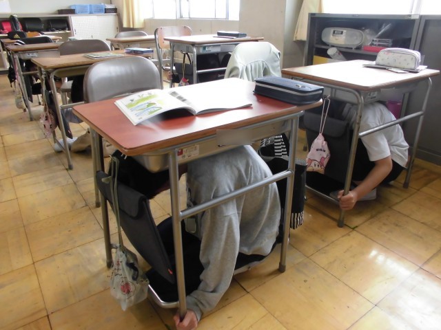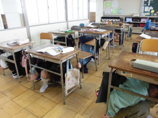 子どもたちは「お・は・し・も」を守り、真剣な表情で運動場へ避難していました。