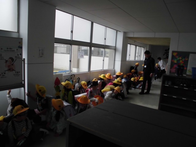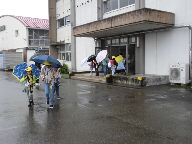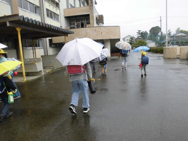 班長さんに迎えに来てもらって、雨降り下校の場所まで行きました。
