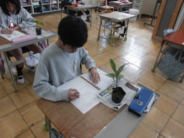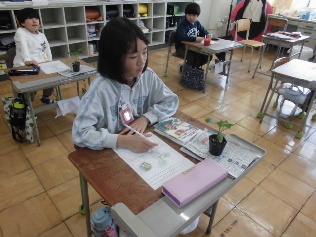 苗の絵をスケッチし、気付いたことを書きました。