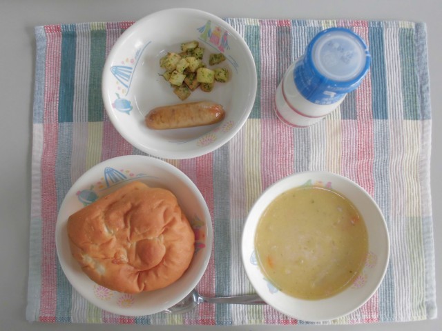 りんごパン 牛乳 焼きフランクフルト コロコロのり塩ポテト コーンポタージュ