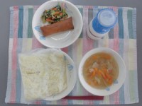 今日の給食は、ごはん、牛乳、呉汁、照りどり、冷凍パインです。