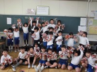 1枚目…中間放課に読み聞かせボランディアの方に大型紙芝居「桃太郎」を読んでいただきました。帰りには、かわいい折り紙のおみやげももらえて大喜びでした。