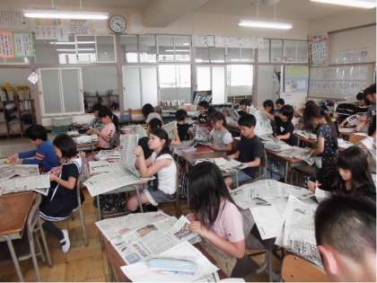 自分の興味のある新聞記事を切り抜いて、スピーチ原稿を作りました。きれいな写真やニュースなどで気になっていたことなど、思い思いの記事を選んでいました。その後、難しい言葉や漢字は先生に聞きながら内容をまとめていました。これから、毎朝、順番に発表していきます。どんなニュースがあるか楽しみですね。