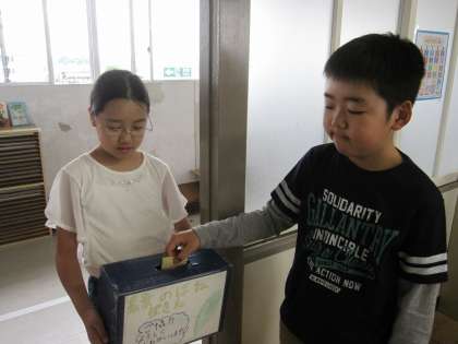 今日14日に緑化委員会の児童が、各教室に出かけて緑の募金呼びかけました。多くの子どもたちが募金活動に協力してくれました。ありがとうございました。
