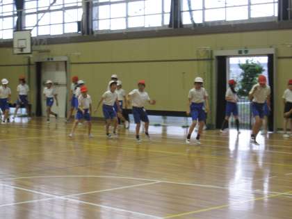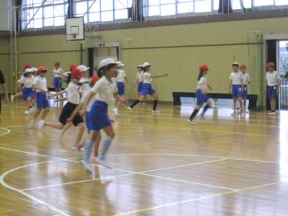 子どもたちが雨天でも楽しくできるよう、レクリエーション的な要素も取り入れながら練習に取り組みました。