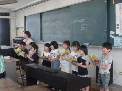 2年2組は、音楽「やまびこごっこ」です。やまびこ隊とたんけん隊に分かれて、元気よくやまびこごっこを楽しんでいます。