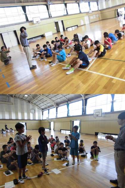 中間放課に、ミニバスケットボール部とサッカー部のオリエンテーションを行いました。参加にあたっての心構えや練習の流れなど、顧問の先生から話がありました。