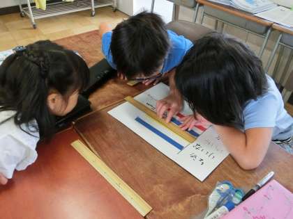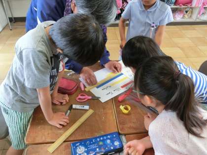 10センチのはずが、20センチになってしまったり、5センチになったりしながら、グループみんなで仲良く考えることができました。