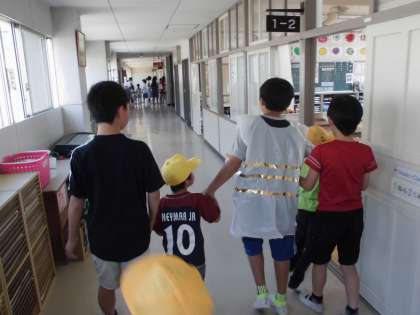放課には、あいさつマンも登場して、あいさつ運動を盛り上げています。あいさつ運動が終わっても、自分から進んで元気よく笑顔で挨拶ができる、輝く千秋東っ子になりましょう。