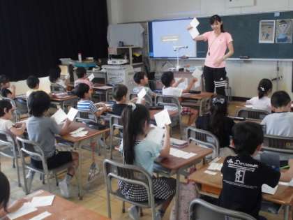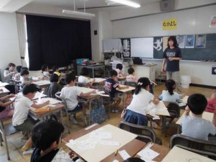 1年1組と2組はともに図工です。人の頭や腕などの紙のパーツを、体の動きを考えながら貼り合わせました。この後、先生と確認しながらクレヨンを使って順番に画用紙に描いていきました。