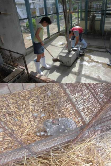 今日は日曜日ですが、「親子ふれあい教室」が行われるので、学校にはいつものように登校しています。そして、飼育委員の児童は、いつものように委員会の活動を忘れずに行います。ウサギやインコには、日曜日も関係ないから、えさや水は必要だし、小屋の中もきれいにしてあげたいですね。きっと喜んでいることでしょう。ありがとうね。
