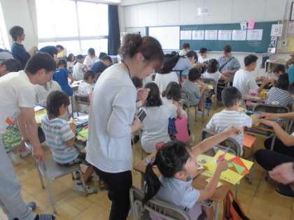 本日は、千秋東小学校学校公開日でした。2年生は2時間目のふれあい教室でマペット作りを行いました。お家の人と一緒に作ることができました。ステキな作品ばかりです。