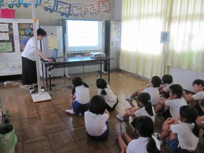 本日、9月の身体測定を行いました。その後、養護教諭により規則正しい生活についての話がありました。