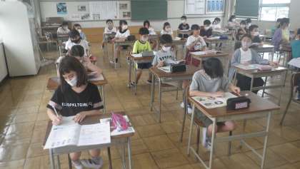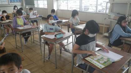 音楽室で担任先生のピアノ演奏で鑑賞です。