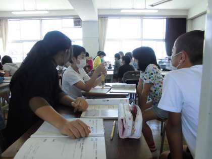 理科では、空気中にある酸素や二酸化炭素の量を測定しました。使い方の指示をよく聞いて、班で協力して測定していました。思ったより空気中の二酸化炭素の量が少なくて、驚きの声があがっていました。