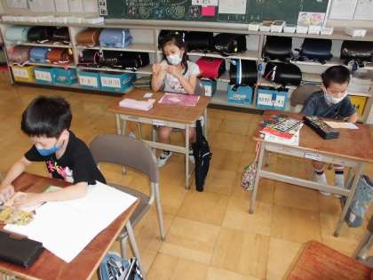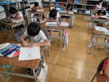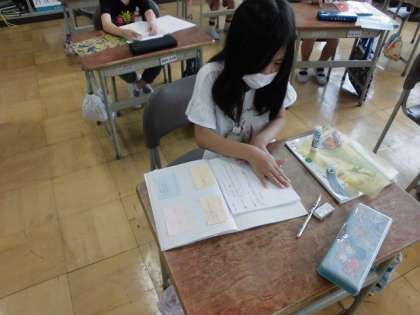国語の「観察名人になろう」の学習では、ピーマン、きゅうり、なすを観察したメモをもとに、観察文を書きました。今日は、書いた文章を友達と読みあう活動をしました。