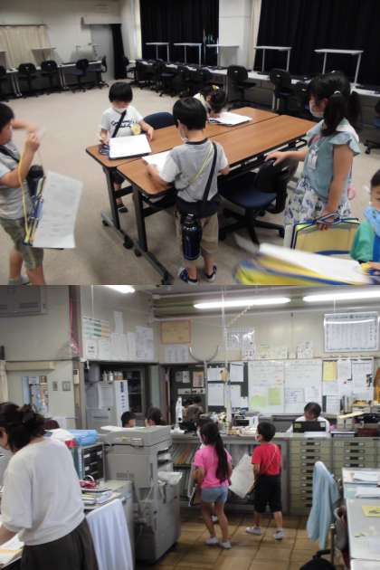 1年2組も、生活科の授業で学校探検をしました。きまりを守りながら、学校中の特別教室や体育館、職員室などを回りました。たんけんのあとは、見つけたよカードを記入しました。一人一人いろいろなものを見つけました。みなさんの観察力はすごいです!