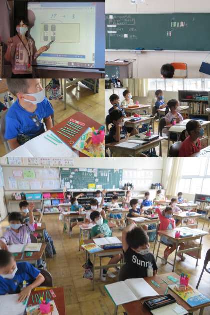 数え棒を使って数の概念を視覚的に理解し、ノートの上で数字だけの計算ができるようにしていきます。