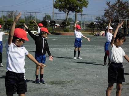 外でのダンス練習が始まりました。屋内運動場と違い広いため、のびのびと踊っていました。