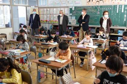授業の後半では、学校運営協議会の方がいらっしゃって、授業参観をされていきました。