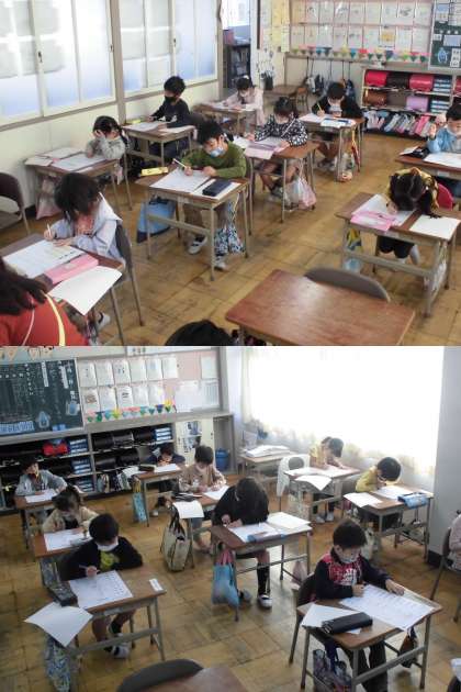 ”たしざん(2)”の確認テストをしました。問題数が多くなってきましたが、みんな集中して問題を解いていました。