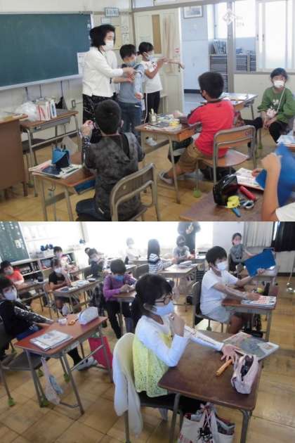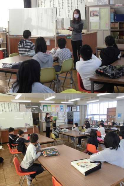 図書館では、学校司書さんによるブックトークが行われていました。「南吉の人生」というテーマで、新見南吉の著書を巧みな話術で紹介していました。司書さんの話を聞いている子どもたちの目は、とてもキラキラと輝いていました。