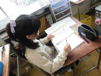 国語の学習で、自分の考えに説得力を持たせるために、グラフや表を用いて文章を書いています。社会で学習したことを生かしている子もいます。