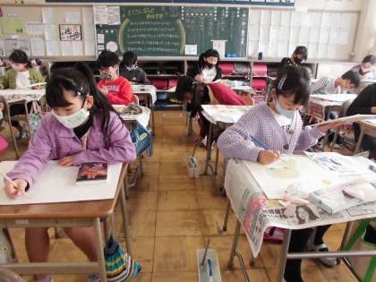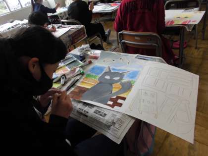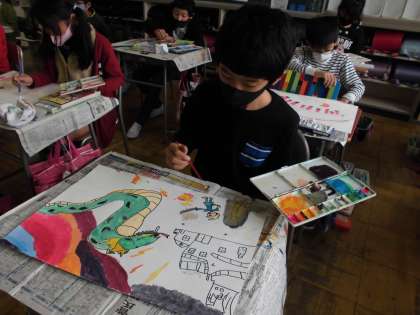図画工作では、読書感想画を描いています。今日は彩色に入っており、だんだん完成に近づいてきています。「今までで一番上手に描けた」と言っている子も多く、どれも素敵な作品ばかりです。読書の秋、本を読むだけでなく、いろいろな楽しみ方ができますね。