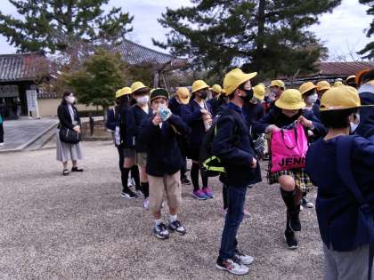 社会で学習した法隆寺を見学しました。法隆寺の七不思議がわかりましたね