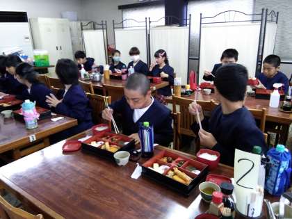 昼食は、太子堂でいただきました。食べる前には除菌シートで手を拭きました。ご準備ありがとうございました。