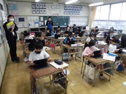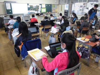 社会科で、消防署について学習しています。この時間は、119番にかけると、なぜ消防本部につながるのかについて考えました。子どもたちは、自分の考えをジャムボードに入力して友達と意見交換をしました。これを使うと、一度にみんなの意見を共有することができてとても便利です。