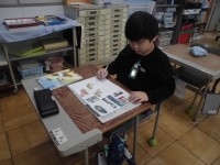 音楽の時間に体を動かして楽しく学習をしました。1人ずつ順に手を打つ「パチパチリレー」(子どもが名付けました)をしました。「フルーツケーキ」の替え歌では、納豆やオクラが出て、盛り上がりました。